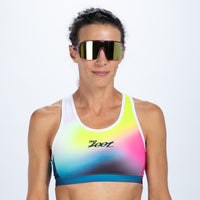 The Zoot triathlon bra was created for women, by women. The supportive yet stretchy fabric keeps you contained and comfortable during the swim, bike and run. A racerback design lets you move naturally when you're getting after it. This bra is great for training and racing and will give you the support and style you're looking for.