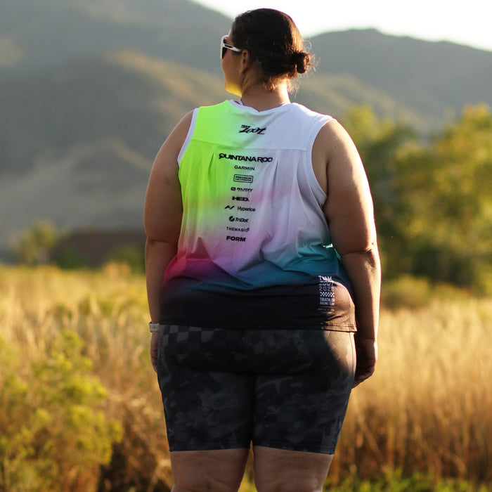 Our only requirement is that you purchase a triathlon race suit, or a triathlon top and bottom. We want everyone to match on the racecourse so we can stand out together, cheer each other on, and race as one!